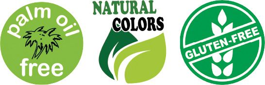 sucre, sirop de glucose, eau, gélatine, acidifiants: E270-E296-E330, arômes, concentrés de(spiruline, carthame, raisin, jus de carotte noire), colorant (extrait de paprika), huile végétale(cocos), agent d’enrobage: cire de carnauba.